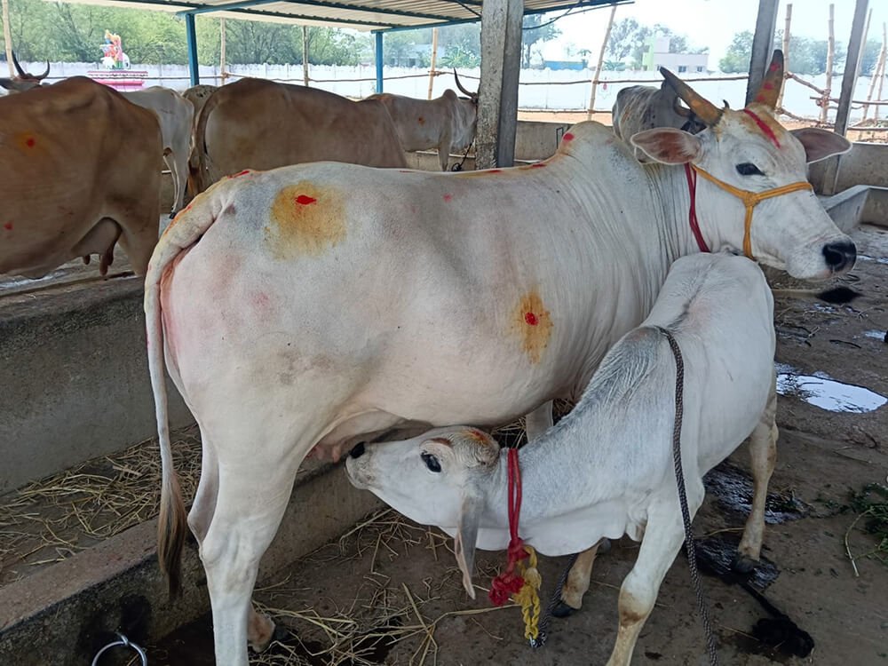 Native breeds are disappearing across India. At Kooram, we protect and care for over 30 indigenous cows who serve daily in temple kainkaryam. Protecting our native breeds is the greatest dharma today. These sacred desi cows are loved by Lord Krishna and need protection, love, and compassion.